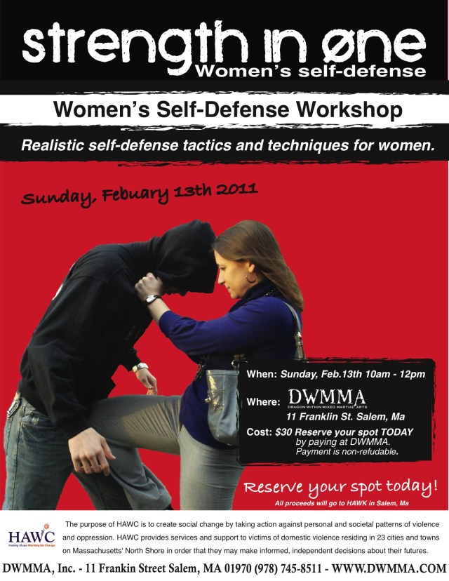 Want to kick some butt of your own in 2011?Dragon Within Mixed Martial Arts will hold its first self-defense class for women on Feb. 12. The class is $30 and proceeds benefit local non-profitHAWC. This could make a really fantastic Girls Night Out for you and your friends.